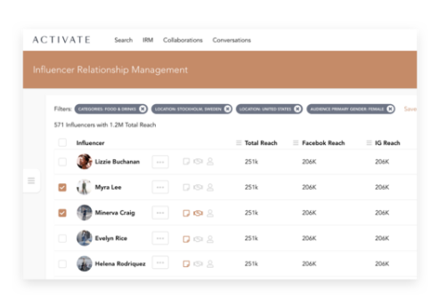 Set scope of work and detailed filters, like engagement, audience, and more, to surface your collaborations to the right communities. Find the best creators from applications you’ve received, search through our diverse marketplace, or tap into curated lists handpicked by our team. Our powerful Influencer Relationship Management (IRM) tool helps you manage and foster long-term, holistic influencer relationships. Analyze deep campaign insights to see which influencers and pieces of content you should re-invest and amplify. IRM allows you to cultivate and track thousands of influencer relationships from one place. Log custom data about each influencer to search and filter for later. Identify your top performers and utilize our automation features to re-engage them at scale. Survey your influencer network or the wider ACTIVATE community with targeted questions. Funnel all the data into your IRM to inform collaboration opportunities and creative approaches in the future.