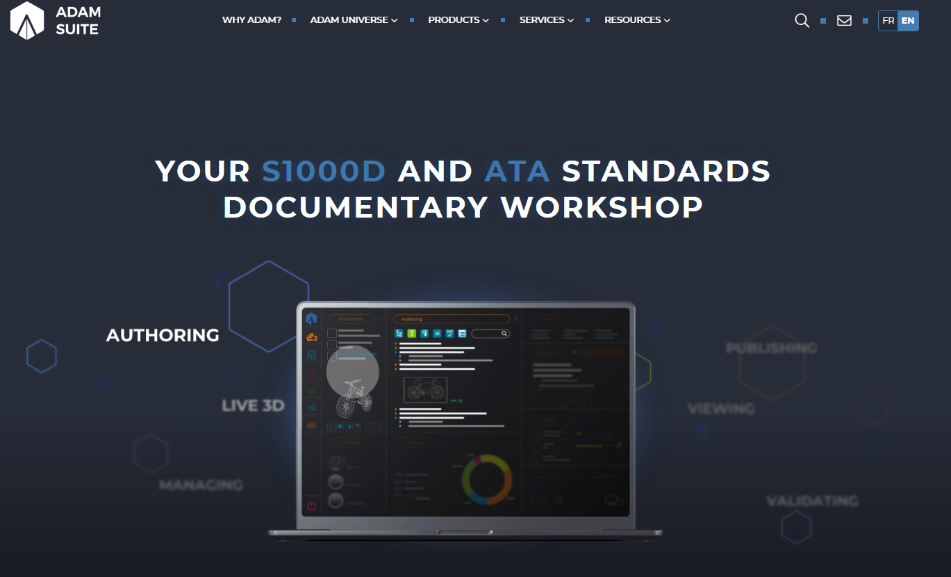 The ADAM Document Workshop allows you to produce, manage, publish and distribute your technical documentation. It adapts easily to your PLM tools via a configuration or an API to create, manage and enhance data in S1000D, S2000M, S3000L, ATA2300 or your standard format. ADAM Suite is a product of 4D Concept, an expert in document engineering. ADAM Author supports authors in the creation of content and guides users in the perfect application of documentary standards. ADAM 3D Plugin is a connector that optimizes the document process by assisting content authoring through the automatic analysis of 3D animations created in Catia Composer. ADAM Manager is a CSDB S1000D/ATA2300 with a multitude of tools and features to simplify all routine actions and project management.