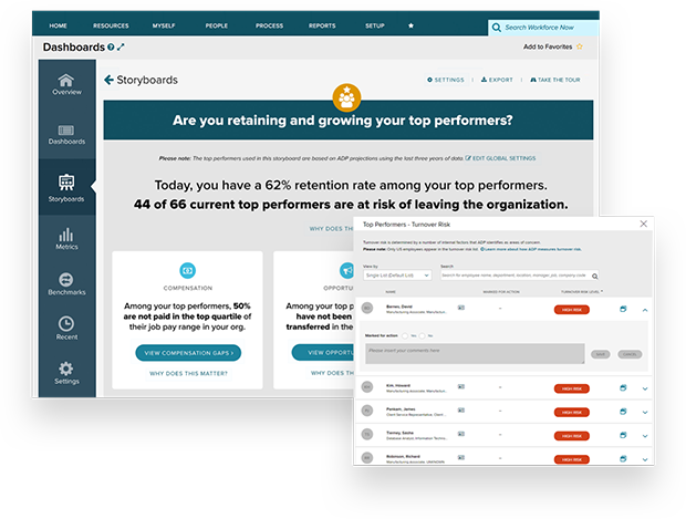 ADP DataCloud's guided analytics experiences make it easy to answer common business questions, even if you aren’t an analytics expert, and then share those insights with the people who need them most. Analytics tailored to your organization are simple to setup, use and distribute. Turn data into action and business outcomes within your organization. Leverage the most powerful workforce dataset to know where you stand vs. peer companies. Go beyond the numbers by connecting to people and what drives them to make change stick. ADP DataCloud’s streamlined, configurable dashboards can help you identify potential issues in key areas, like overtime, turnover, compensation and much more. Reliable, sound data that tells the full story of your organization, from the business and department level to the people level, can help your HR practitioners and managers make better decisions.