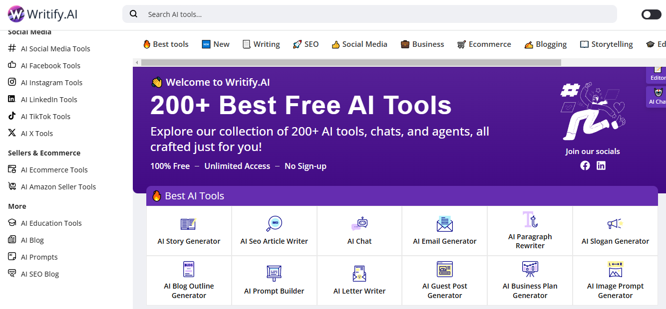 Explore our collection of 200+ AI tools, chats, and agents, all crafted just for you. Writify.AI offers an unlimited suite of advanced AI writing tools, all free, and no sign-up is required. Generate code, enhance text, and craft SEO content, we’re your ultimate writing assistant. Boost your writing effortlessly with our free AI tools, no sign-up is required. Start connecting with your audience like never before. Discover tailored insights that help your words connect and resonate with your audience on a deeper level. Generate engaging questions that grab attention and spark conversations instantly. Craft highly detailed prompts tailored to your vision, optimizing for style, color, and model. Perfect for designers seeking precision and creativity. Modify the tone of your writing to perfectly match your audience and purpose in 3 simple steps. Create engaging and thoughtful comments on a discussion board, get insightful analysis, and spark stimulating conversation with ease.