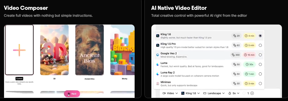 AIVideo.com is an AI-powered video production platform built for creators and brands that want to turn simple instructions into full videos with cinematic quality. The tools include a Video Composer that generates video from plain text prompts, an AI-native video editor giving creators fine-grained control to adjust styles, characters, scenes, and pacing, along with “use your own style or characters” features, so consistency is effortless. It offers AI Sound tools, voiceovers, music, and effects that are generated and synced automatically. It integrates many leading models (OpenAI, Luma, Kling, Eleven Labs, etc.) to leverage the best in generative video, image, audio, and style transfer tech. Users can do text-to-video, image-to-video, image generation, lip sync, and audio-video sync, plus image upscalers. The interface supports prompts, references, and custom inputs so creators can shape their output, not just rely on fully automated workflows.