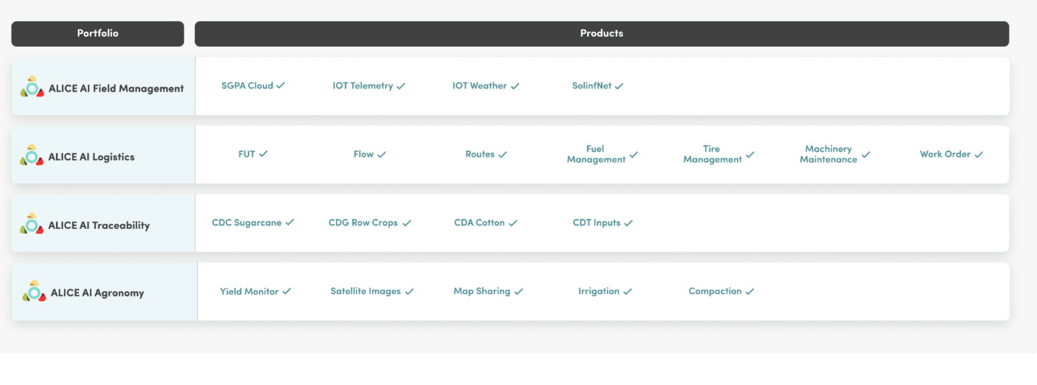 ALICE AI doesn't show you raw data for you to decide and take chances on your own - it shows you the best decision at each step of the way, even if conditions change every hour. ALICE AI receives over 10 billion pieces of information from the field per day. With that, it can reduce your thousands of questions into one certainty: following the path indicated by ALICE AI will yield greater productivity, lower risk, and lower costs for your business. Integrated and systemic, it knows and is integrated into all processes on your farm—from pre-planting to post-harvesting. With that, it can tell you exactly the best moment to carry out each operation, autonomously directing inputs, equipment, machinery, and labor. In the fields, things change all the time. In addition to directing the planning, ALICE AI guarantees that it will be seamlessly executed, coordinating and adjusting routes in real-time—during the processes—thereby avoiding losses.