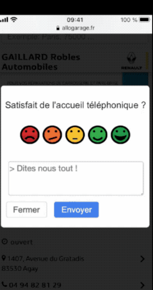 AlloSmile allows you to collect instant satisfaction after each phone call initiated from your website. Easy to set up, and deployable internationally, AlloSmile complements or replaces mystery calls, customer reminders, double listening, email surveys or questionnaires on voice servers. You can select the question asked as well as the display of the note and the verbatim.