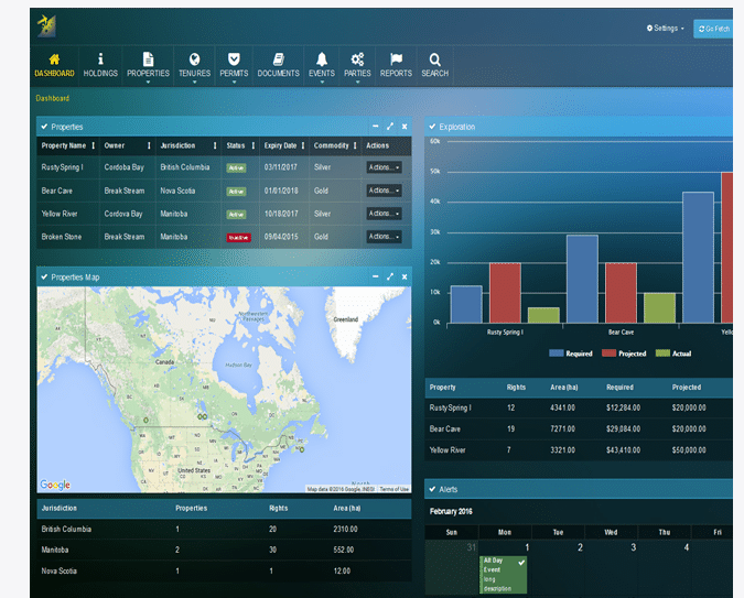 The land management software trueMINER manages the land, tenure, and exploration activities for resource-based companies. Our highly configurable, affordable, and easy-to-use software guarantees to give you the confidence you deserve by providing a secure and transparent environment for your data. trueMINER is designed to advance and integrate the flow of information between land management, permits and properties, financial, and project information, related obligations, and critical dates in one centralized location. Enables bi-directional secure synchronization of the right data and geometry between ESRI ArcGIS Online and trueMINER in real-time. Timely and effective decision-making for tenures, properties, related regulatory development & financial obligations. trueMINER dynamically tracks all exploration activities across multiple jurisdictions for start-ups and major resource-based companies. It manages resource project data from mineral exploration to decision.