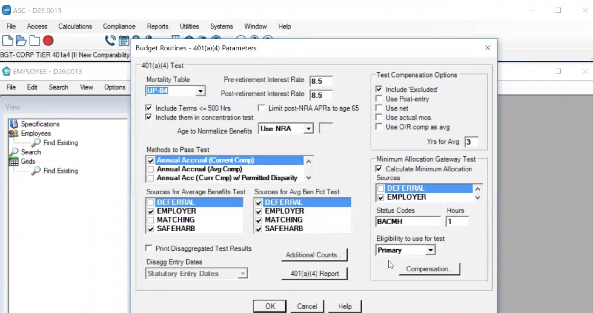 The ASC DC/401(k) administration system is continually updated for all legislative changes. It offers flexible eligibility calculations, an easy data import wizard and comprehensive data checks. It provides for multiple funds and sources, using dollar or share accounting. The ASC full Compliance Testing System is also included. Reports can be generated using the standard reports included with the ASC System, or can be customized using the ASC Reporter, which allows a user to create custom reports. Built in budget solving routines for new comparability, super integrated, age-weighted and sole proprietor/partnership plans. Calculates various employer contributions for 401(k) and other defined contribution plans. Performs extensive employee data validation in one step including ability for custom data validation formulas. Fully updated for all legislative changes.