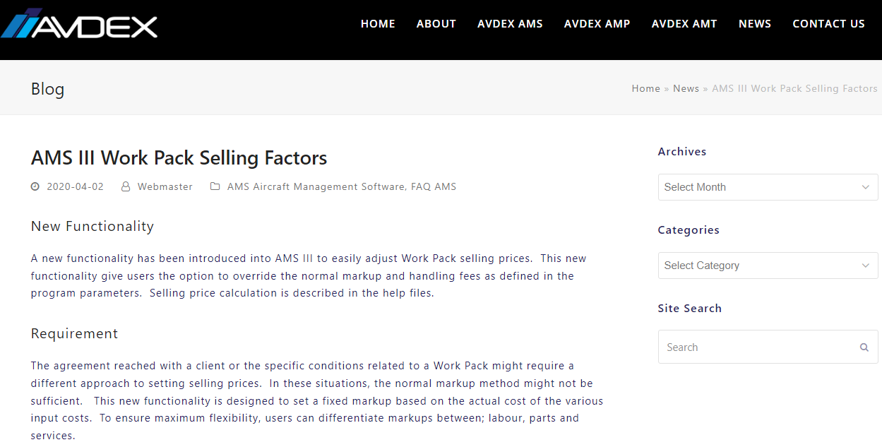 AMS is a feature rich AMO administration program, developed in conjunction with and widely used by the local aviation industry. The program aims to take care of the administrative tasks of an AMO. It has a central aircraft maintenance scheduling system – meaning no schedule building is required on the client’s side AMP provides accurate tracking, which helps the operator and AMO with the planning and tracking of aircraft maintenance. This means less downtime for the aircraft and more productivity for the AMO. AMP offers a variety of helpful features. Note that parts selling calculation with a factor will be based on the landed cost. If the part was received in a different currency, the cost will remain on the exchange rate when the part was received. In addition, note that different batches of the same part number will have different selling prices due to differing landed cost. The factors described above are used to override the default selling price calculations.
