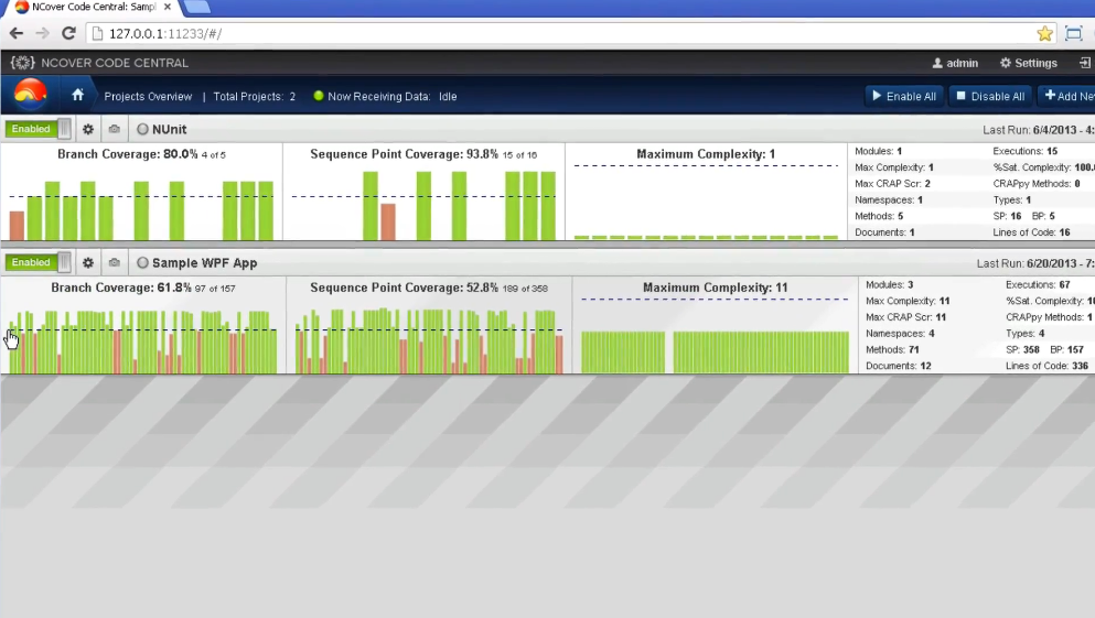 NCover Desktop is a Windows application that helps you collect code coverage statistics for .NET applications and services. After coverage is collected, Desktop displays charts and coverage metrics in a browser-based GUI that allows you to drill all the way down to your individual lines of source code. Desktop also allows you the option to install a Visual Studio extension called Bolt. Bolt offers built-in code coverage that displays unit test results, timings, branch visualization and source code highlighting right in the Visual Studio IDE. NCover Desktop is a major leap forward in the ease and flexibility of code coverage tools. Code coverage, gathered while testing your .NET code, shows the NCover user what code was exercised during the test and gives a specific measurement of unit test coverage. By tracking these statistics over time, you gain a concrete measurement of code quality during the development cycle.