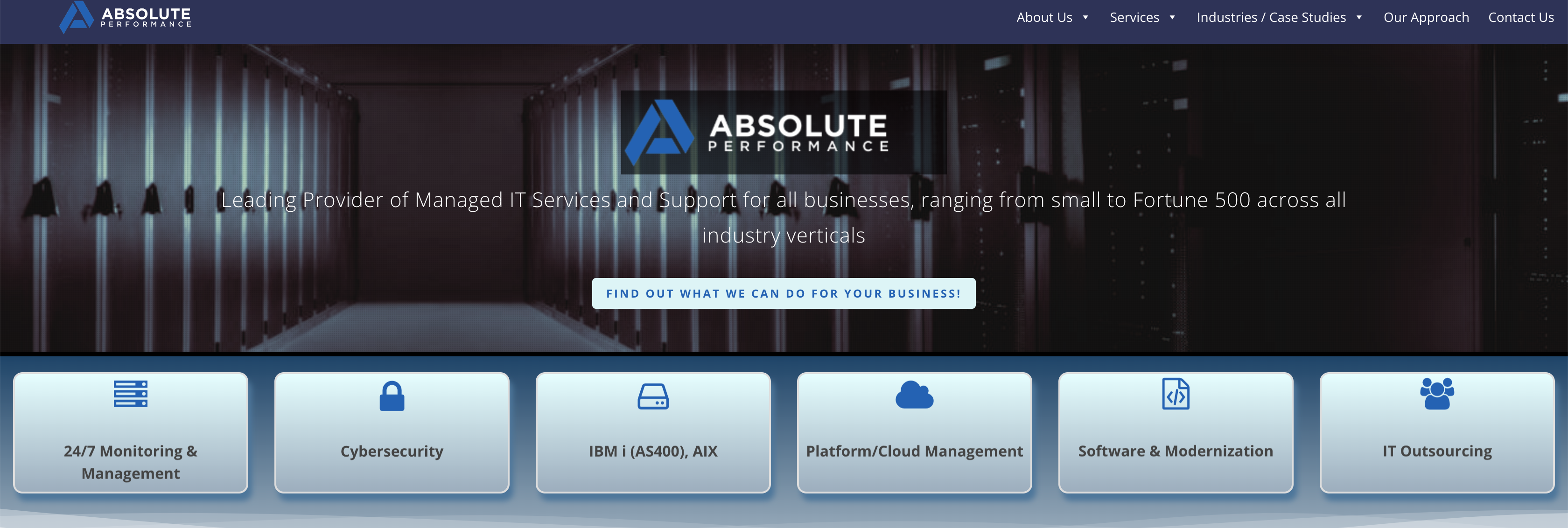 Absolute Performance brings a core of proactive infrastructure, application support, 24/7 monitoring and management and modernization services to make your technical and security headaches a thing of the past. As we learn your business, we are constantly looking for ways to leverage technology to improve your business performance. Each year, from a field of thousands of Managed Service Providers (MSP), IBM recognizes only one company in North America with its award for Leadership in Technology and Innovation.