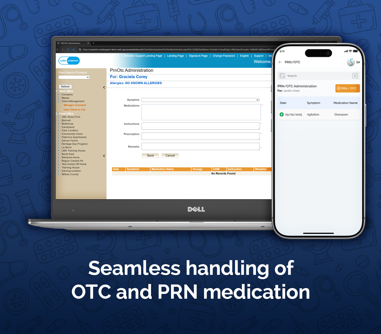 Beyond medication management, the CaraSolva ecosystem includes CareSupport® for tracking daily living activities (ADLs) and BehaviorSupport® for managing behavior intervention plans. Built by nurses for caregivers, the platform serves as a central hub for health outcomes, connecting care teams with pharmacies and management through real-time data, automated alerts, and secure, HIPAA-compliant documentation.