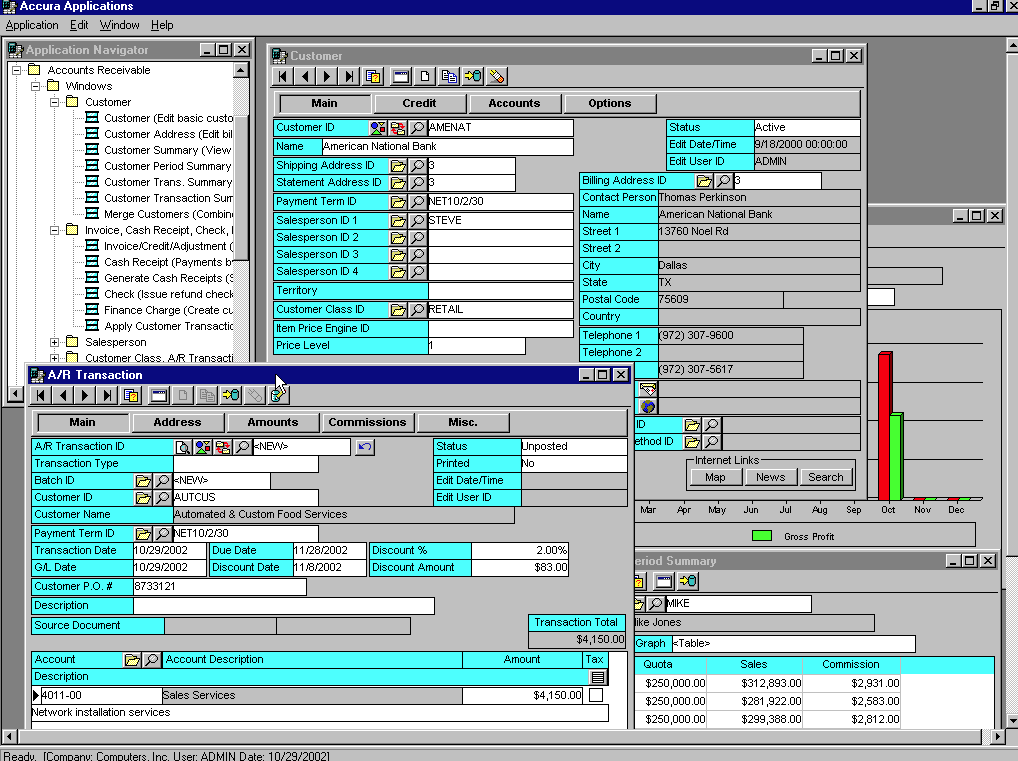 Accounting software implemented at hundreds of companies since 1997 from fast growing startups to established companies with hundreds of millions in revenues and thousands of employees. Accounting software can be customized and integrated to the specific needs of your organization to give you a competitive advantage. Compare to comparable accounting software costing 2 to 10 times more. Includes SQL Server Database. Maintains financial information for an unlimited number of fiscal years with unlimited fiscal periods. User can define account segments up to 32 characters in length. Statistical accounts can be used to track non-financial information. Intercompany transactions automatically balance between companies. The G/L supports powerful allocation by percent, units or variable. Fully customizable financial reports can be created from user-defined row, column and entity templates. Drill-down is available from financial reports to the actual source documents in any application.