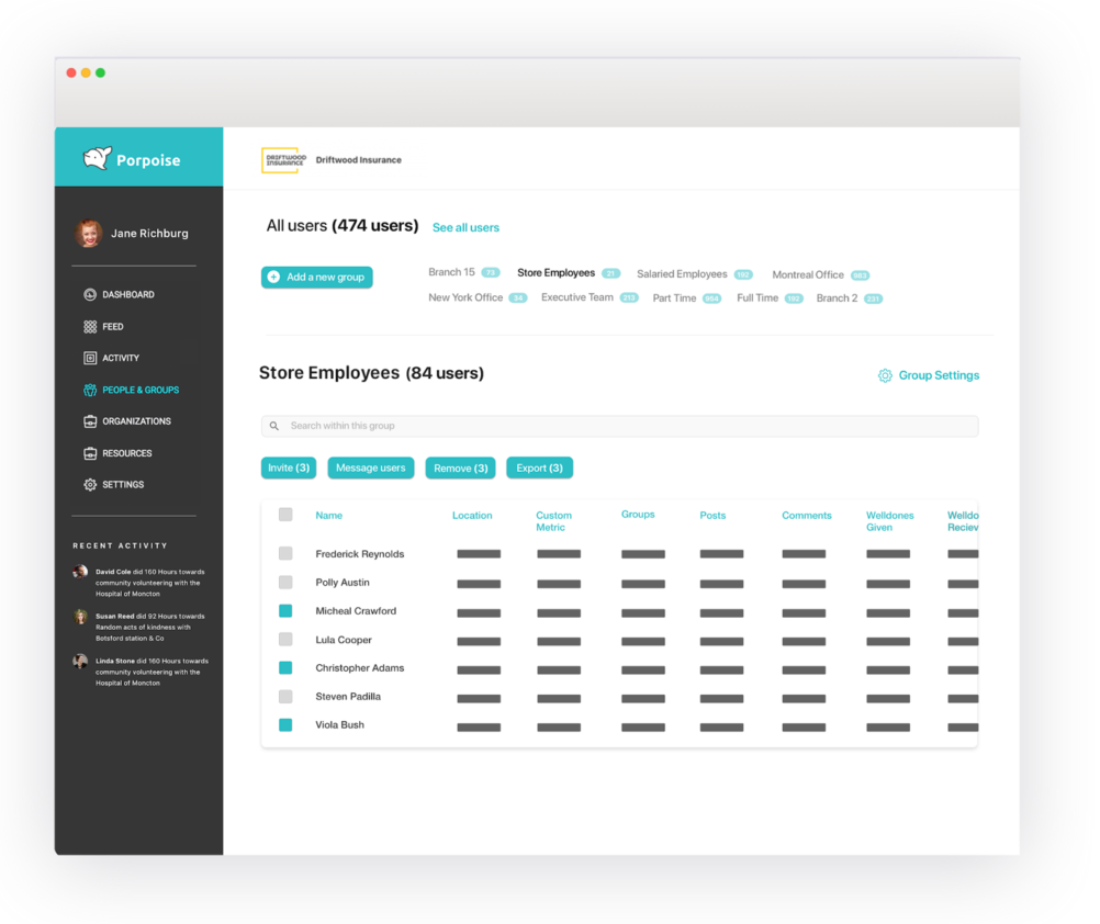 Capture all the great things that your people are already doing engage them more effectively and celebrate their accomplishments! Company software shouldn't be complicated or difficult. Using Porpoise feels just like using the apps you use every day at home. This means your people won't be confused and you can focus on creating fun events that will deliver maximum impact and engagement! Deploy, manage, and report on a successful employee engagement strategy through volunteering events from one, user-friendly platform. By centralizing your communications efforts from Porpoise, you can reduce cost, time, and room for error. Not to mention avoiding the noise from external social software. Direct specific events and communications to different groups, departments, and offices to ensure you create an engaging and relevant experience for everyone.