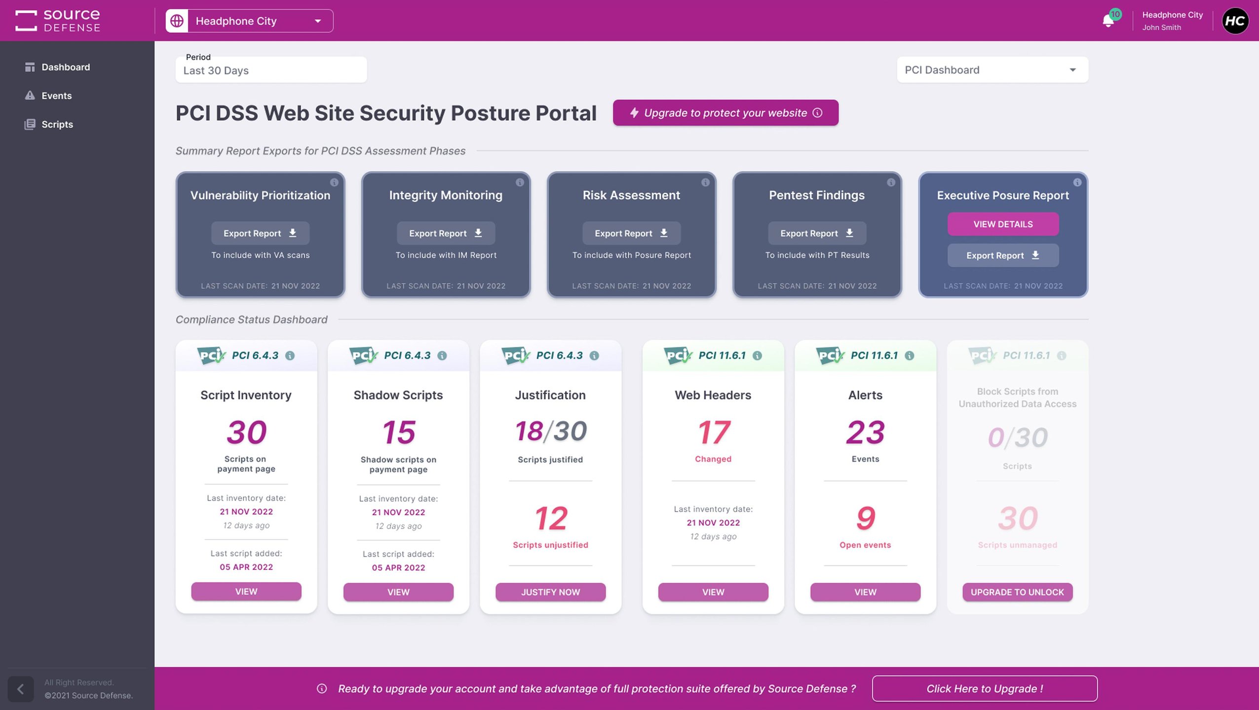 Source Defense is a mission critical element of web security designed to protect data at the point of input. The Source Defense Platform provides a simple and effective solution for data security and data privacy compliance – addressing threats and risks originating from the increased use of JavaScript, third-party vendors, and open-source code in your web properties. The Platform provides options for securing your own code, as well as addressing a ubiquitous gap in the management of third-party digital supply chain risk – controlling the actions of the third-party, fourth and nth party JavaScript that powers your site experience.