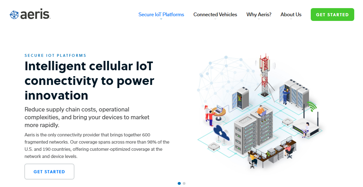 Intelligent cellular IoT connectivity to power innovation. Reduce supply chain costs, and operational complexities, and bring your devices to market more rapidly. Aeris is the only connectivity provider that brings together 600 fragmented networks. Our coverage spans more than 98% of the U.S. and 190 countries, offering customer-optimized coverage at the network and device levels. Secure global connectivity with no boundaries. Ubiquitous connectivity is the most exciting frontier in the IoT world, but fragmented coverage, cellular technologies, complex carrier contracts, and management of carrier partners inhibit innovation, growth, and scale for many IoT solution providers. Connect networks, unify technologies, and eliminate long-term contracts. Aeris Connectivity Management provides you with secure and intelligent connectivity to connect anything, anywhere, anytime. Build and scale IoT programs securely with the industry’s first offering that leverages AI/ML network security.