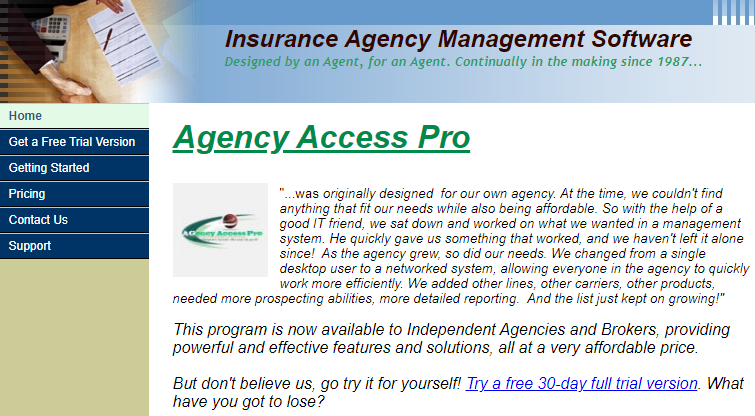 This program is now available to Independent Agencies and Brokers, providing powerful and effective features and solutions, all at a very affordable price. Originally designed for our own agency. At the time, we couldn't find anything that fit our needs while also being affordable. So with the help of a good IT friend, we sat down and worked on what we wanted in a management system. He quickly gave us something that worked, and we haven't left it alone since! As the agency grew, so did our needs. We changed from a single desktop user to a networked system, allowing everyone in the agency to quickly work more efficiently. We added other lines, other carriers, other products, that needed more prospecting abilities, more detailed reporting. And the list just kept on growing! Daily or weekly suspense reporting, easy mail merging, prospecting by X-Dates or carrier, automatic renewal notifications, sub-producer reporting.