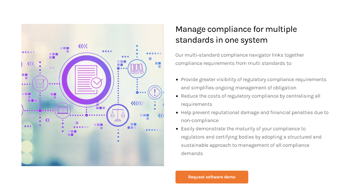 The Agility System’s compliance management navigator provides regulators, auditors and employees with the highest level of transparency that all statutory requirements are being addressed. The compliance navigator enables documents and processes to be linked to individual requirements of each standard or regulation regardless of industry vertical. Provide greater visibility of regulatory compliance requirements and simplifies ongoing management of obligation. Easily demonstrate the maturity of your compliance to regulators and certifying bodies by adopting a structured and sustainable approach to the management of all compliance demands. Help prevent reputational damage and financial penalties due to non-compliance.