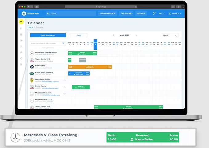 Beyond the surface, TopRentApp offers more than just a vehicle rental software. It incorporates a revolutionary client management solution — an ultra-modern car rental CRM. This unique feature provides tools to effectively manage client interactions, allowing you to unlock the full potential of your business. The ability to track customer preferences, rental histories, and interaction patterns allows you to deliver a truly personalized service, increasing customer satisfaction and loyalty. TopRentApp is the ideal business software for car rental companies of all sizes, uniquely blending industry expertise with avant-garde technology to deliver unparalleled results. Our rental management system addresses every aspect of your business needs, incorporating elements from rental car booking software to comprehensive auto rental systems and intricate rental car management software. Moreover, TopRentApp's car rental management is designed to adapt and grow with your business.