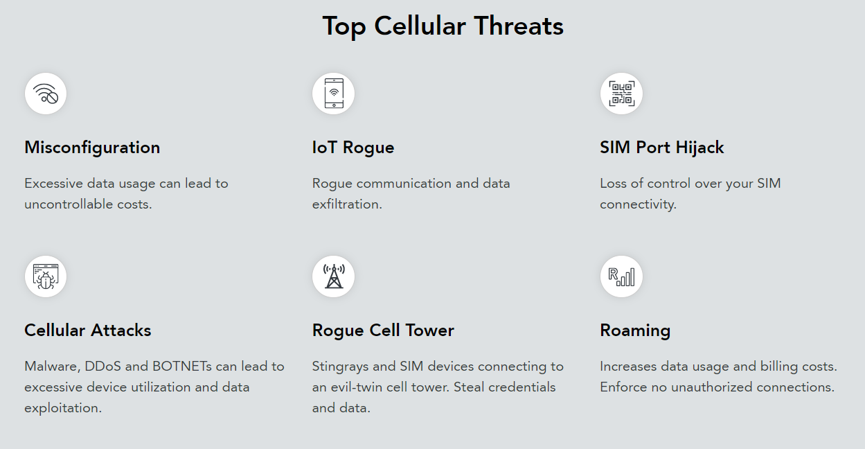 Organizations looking for a cellular IoT security service to manage cellular risks, costs and threats in real time