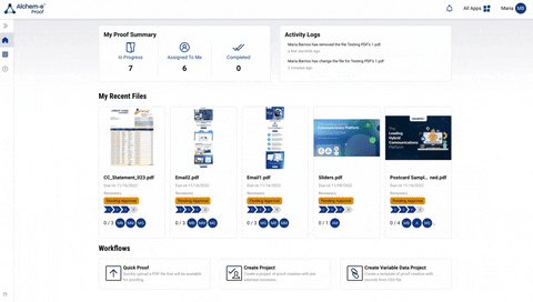 Alchem-e™ Proof presents real-time progress tracking, accurate comments and markups on the designs, seamless client approval process, compliance, a trail of activities done for a project, proof or file and unlimited guest reviews.