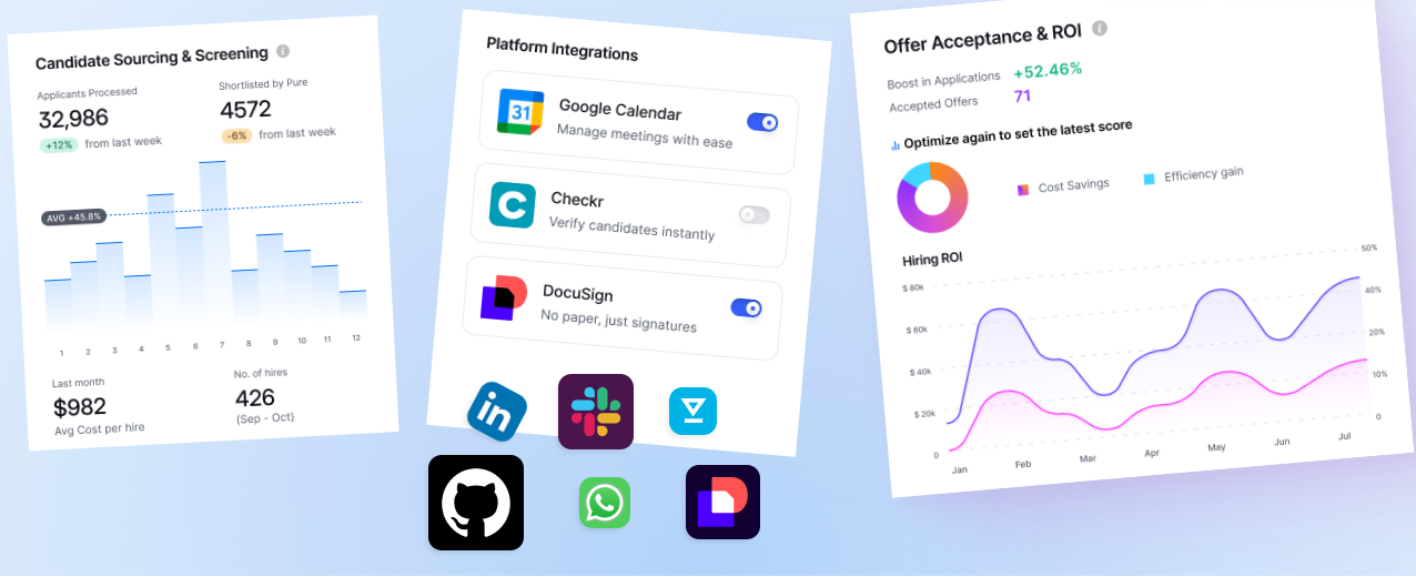 Purehire is an AI-first hiring solution that automates every stage of recruitment. It supports sourcing, resume screening, AI-driven interviews, and onboarding in one place, helping recruiters save time and improve candidate quality. Evolved beyond traditional hiring and limited hiring tools. Global hiring made easy with multilingual capabilities, timezone-aware scheduling, and compliance tailored to every market. Enterprise-grade protection with SOC2 compliance, audit trails, and advanced data security at every step. Cut time-to-hire by 85%, match candidates with 95% accuracy, and consistently improve hiring quality with measurable results. From sourcing to onboarding, our comprehensive hiring solution has you covered. Unlike single-feature tools, Purehire covers the entire hiring journey from sourcing to onboarding. It combines automation with explainable AI insights, making the process faster and more transparent.