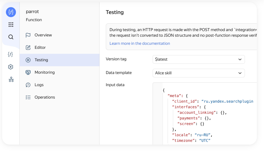 Run code as a function in a secure, fault-tolerant, and automatically scalable environment without creating or maintaining VMs. As the number of function calls increases, the service automatically creates additional instances of your function. All functions run in parallel. The runtime environment is hosted in three availability zones, ensuring availability even if one zone fails. Configure and prepare instances of functions always ready to process loads. This mode allows you to avoid cold starts and quickly process loads of any size. Give functions access to your VPC to accelerate interactions with private resources, database clusters, virtual machines, Kubernetes nodes, etc. Serverless Functions tracks and logs information about function calls and analyzes execution flow and performance. You can also describe logging mechanisms in your function code. Launch cloud functions in synchronized mode and delayed execution mode.