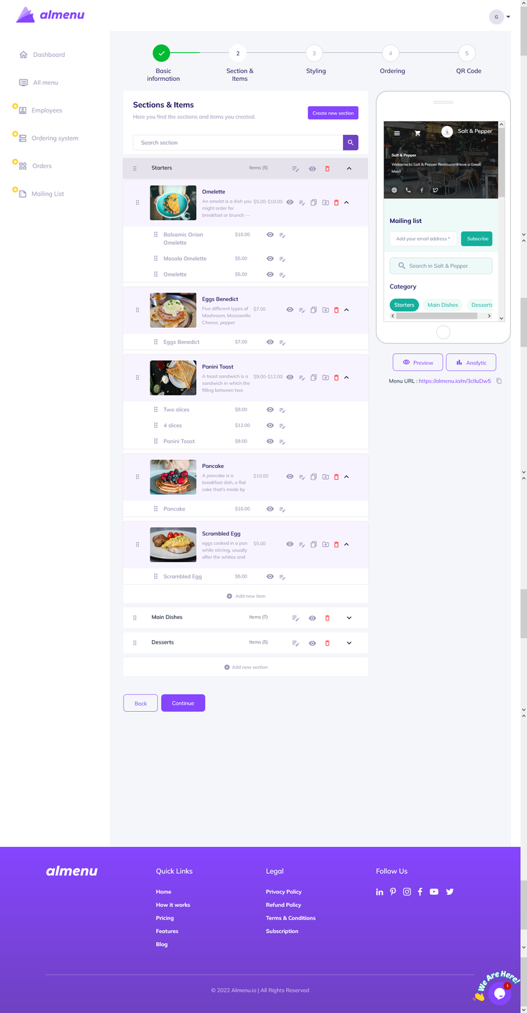 Create contactless digital menu Qr code for your restaurant or café with Almenu within 5 minutes. It is built for your ease.