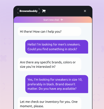 Supercharge your customer shopping experience with Browsebuddy. Empower your store with our AI shopping assistant, where smart selling meets instant support. It understands your catalog to enhance shopping experiences and provides immediate help, boosting sales and customer satisfaction effortlessly. Simplify your customer's path to purchase with our AI shopping assistant's chat-to-checkout feature. It smartly navigates through your product catalog, offering comparisons and insights, leading customers from initial interest to final transaction. Recreate the in-store shopping experience with our AI-powered shopping assistant. Acting as a digital sales associate, it offers personalized guidance and product recommendations, making online shopping as interactive and customer-friendly as a visit to your favorite store. Using advanced analytics, our AI shopping assistant dives deep into customer behavior and preferences to suggest the perfect products.