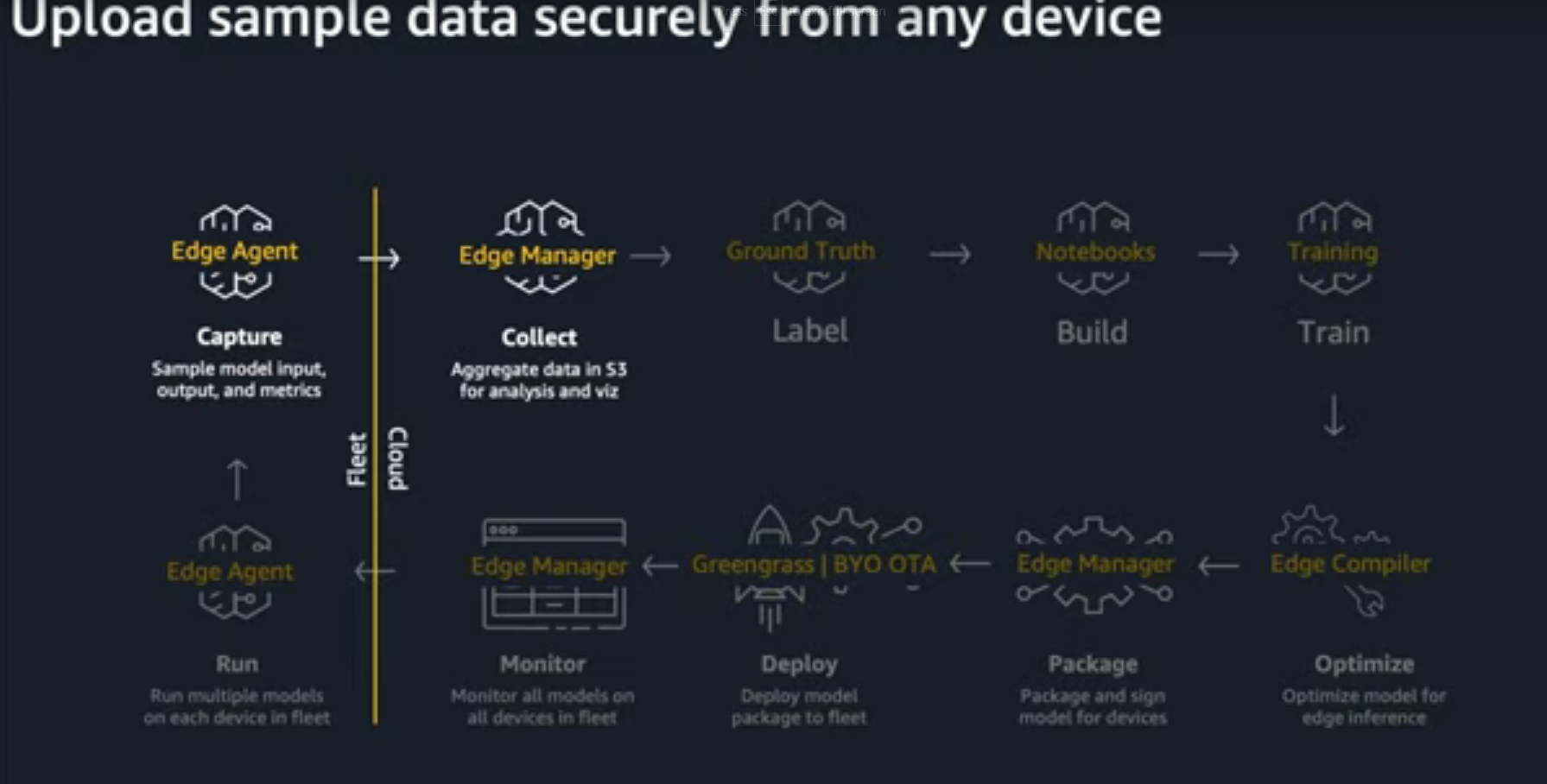 The SageMaker Edge Agent allows you to capture data and metadata based on triggers that you set so that you can retrain your existing models with real-world data or build new models. Additionally, this data can be used to conduct your own analysis, such as model drift analysis. We offer three options for deployment. GGv2 (~ size 100MB) is a fully integrated AWS IoT deployment mechanism. For those customers with a limited device capacity, we have a smaller built-in deployment mechanism within SageMaker Edge. For customers who have a preferred deployment mechanism, we support third party mechanisms that can be plugged into our user flow. Amazon SageMaker Edge Manager provides a dashboard so you can understand the performance of models running on each device across your fleet. The dashboard helps you visually understand overall fleet health and identify the problematic models through a dashboard in the console.