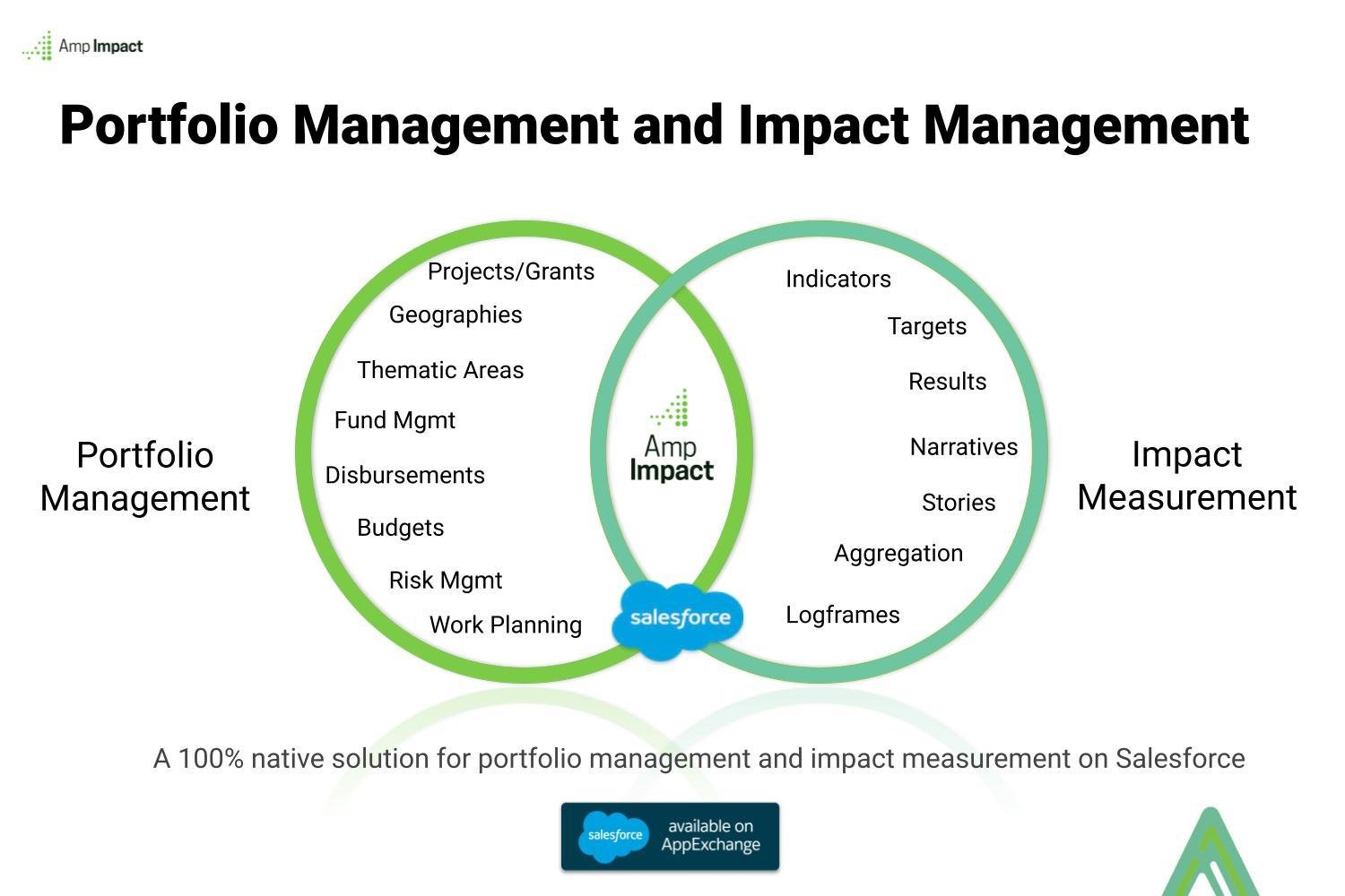 Amp Impact is a Salesforce-based solution by Vera Solutions, for organizations pursuing impact. Built on common needs observed during hundreds of digital transformation projects, Amp Impact enables social-impact organizations to trade in complex spreadsheets for a flexible, friendly, and integrated technology solution. It's a tool designed for grantees and grantors – a tool that streamlines workflow and data flow, from the field to local offices to HQ to funders. Amp Impact is now used in more than 150+ countries to manage data for over $12.5 billion in development programs and grants. Vera Solutions has worked with 430+ international clients in the nonprofit sector, committed to tracking their impact and streamlining their operations.