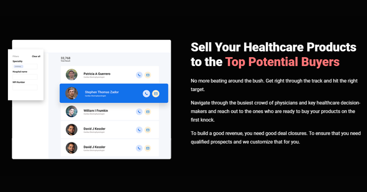 Healthcare, Medical Device Manufacturing Companies, Pharmaceutical Companies, Healthcare Recruitment Firms, Medical Representatives, Diagnostic Centers, B2B Industry