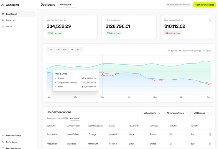 Cut cloud costs, not headcount. Making cloud savings automated, effortless, and risk-free. Allow our AI engine to buy and sell instances on your behalf to optimize your AWS spend. Stay in the know for who’s involved at all times. Customize your alerts, so you can stay in control. Invite your team to help manage your AWS spend and increase collaboration. Get the benefits of long-term AWS pricing without the lock-in. Our AI engine continuously monitors and learns from your usage patterns to identify new savings opportunities. Getting started takes less than 2 minutes. Leverage our AI risk model to accurately forecast your usage, allowing you to maximize savings while still accounting for risk. Take advantage of automated RI transfers within our customer pool for maximum flexibility. Protect against underutilization with Antimetal’s Underutilization Insurance. We take on the risk so you don’t have to.