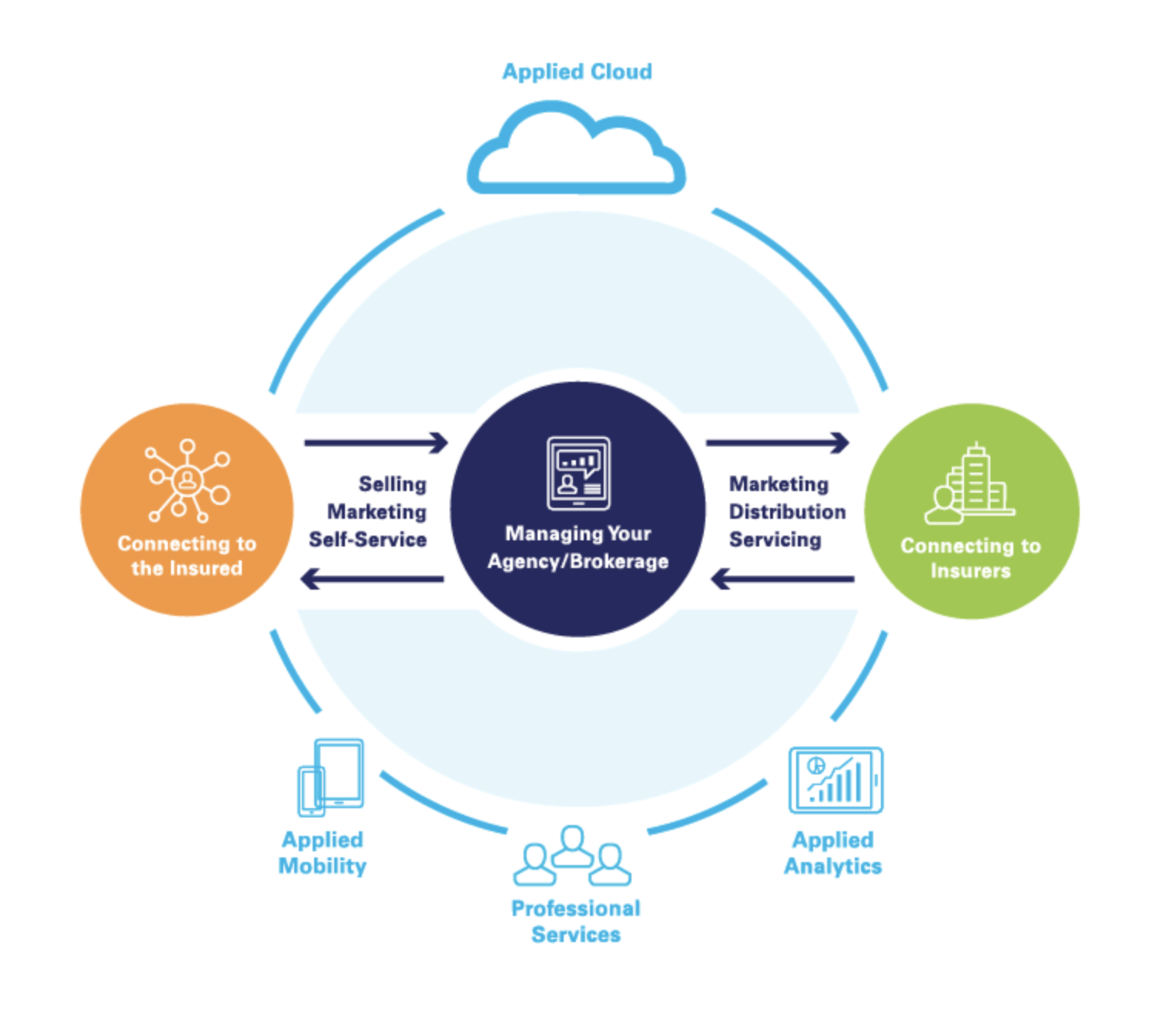 Have peace of mind knowing your software’s updated, your data’s secure and your business is running at its best. Moving operations to the cloud provides anytime, anywhere access to your insurance information, increased data security, reduced cost and time spent managing on-premise hardware and software, and ensures business continuity during a disruptive event. With more than 100,000 users across four countries, Applied Cloud™ is the only cloud built specifically for the insurance industry to provide your business the reliability and performance it needs. Applied’s team of highly skilled cloud specialists configure your software to ensure your agency management system operates at optimal levels within the cloud environment. Leave all hardware and software testing, maintenance and updating to the Applied Cloud team so your staff can focus on selling and service.