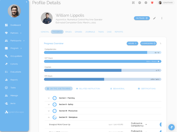 Employers, workforce sponsors, and government or training organizations that need to manage and scale registered apprenticeship programs with automated compliance and tracking