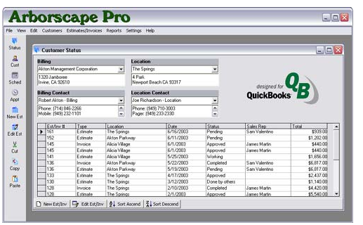 Tracking Customers from estimates to invoices to future call-backs. Customer history, current status, salesperson performance, and job profitability at a glance. Flexibility in managing the relationships between billing addresses and work locations. Streamlined connection to Microsoft Outlook for contact management, form letters and email. Easily links to Quickbooks for accounting. Designed by Arborists for Arborists with streamlined operations and data integration.