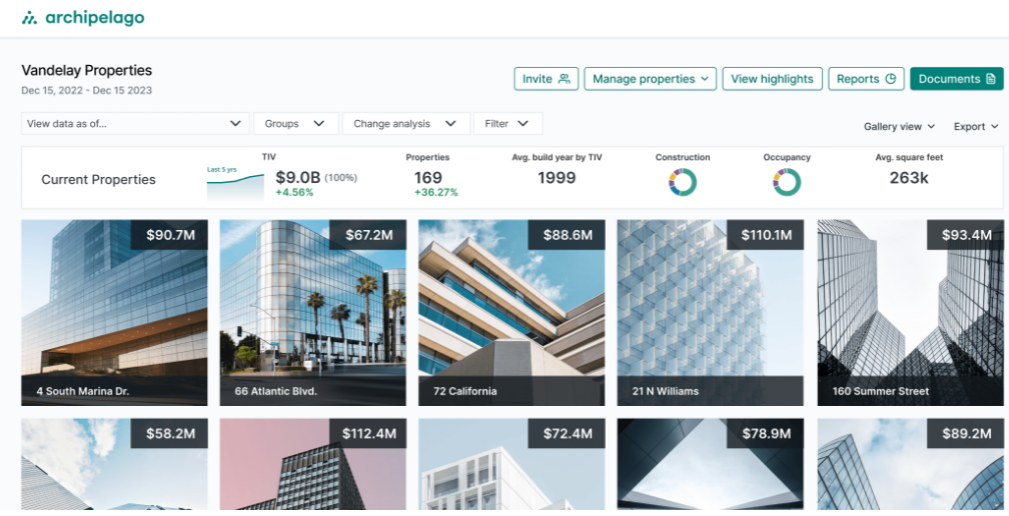 Using AI to digitize and enrich your primary risk data, our platform connects your properties and enhances the data in your submissions for the best insurance outcomes through resiliency-driven ROI. Archipelago takes the pain out of managing your property data. Trusted by risk managers, brokers, and insurers to proactively manage commercial property risk. Designed to support the diverse array of buildings in any portfolio. Connecting every player in the property insurance industry for better outcomes. The current way risk managers, insurers, and brokers work together to protect properties and manage risk is manual and inefficient. Move to a platform designed to connect, streamline, and automate the way property placements are done for optimal outcomes. AI sources and translates real estate data and 10,000s documents into insurance formats for SOVs, modeling, and desktop analysis.