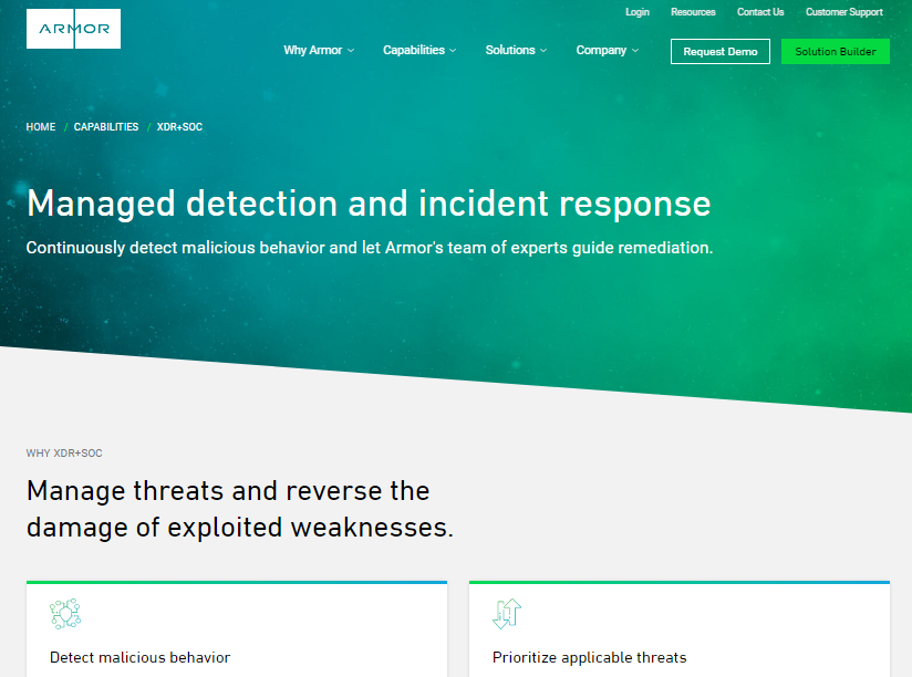 Continuously detect malicious behavior and let Armor's team of experts guide remediation. Manage threats and reverse the damage of exploited weaknesses. Collect logs and telemetry across your enterprise and cloud environments and leverage Armor's robust threat-hunting and alerting library to detect threats. Using open-source, commercial, and proprietary threat intelligence, the Armor platform enriches incoming data to enable smarter, faster determinations of threat levels. When threats are detected, alerts and incidents are created – you can rely on Armor's team of security experts around-the-clock to respond to threats. Armor's platform was built to take advantage of advanced AI and machine learning, as well as cloud-native automation engines to make all aspects of the security lifecycle simpler. Cloud-native detection and response with the support of a 24/7 team of cybersecurity experts. Armor Anywhere is integrated within our XDR+SOC offering with dashboard visibility.