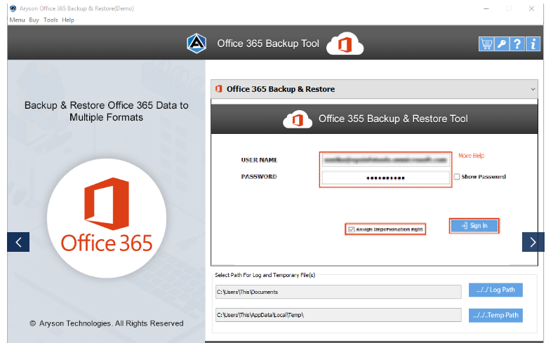 Aryson Office 365 Backup & Restore is a risk-free & reliable Office 365 Backup utility that allows you to take the backup of Office 365 mailboxes into various file formats. It takes backup of Office 365 mailboxes into PST, MBOX, PDF, EML, EMLX, MSG, and other file formats on your local system or pc. It also restores mailboxes of PST/OST files into the Office 365 account. Aryson Office 365 Email Backup Tool is the top utility that allows users to back up or migrate Office mailboxes to various file formats and email clients. Using this software, users can backup and migrate Office 365 mailboxes to PST, PDF, MSG, MBOX, Gmail, Yahoo, GoDaddy email, Yandex, Amazon Webmail, IMAP, etc. Sometimes, Office 365 users search for a quick solution that helps to download all emails from Office 365 accounts. Considering the users’ search, Aryson Office 365 Email backup tool allows users to download all emails from office 365 to any storage device in many formats such as PST, MSG, EML, MBOX, etc.