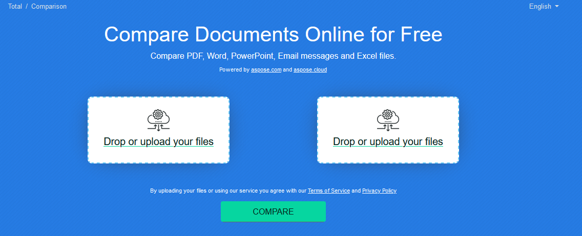 Aspose.Total Comparison has provided complete functionality for efficiently comparing multiple files online with ease. File comparison is a very useful operation that matches different files with each other to find out any differences. The online free comparison app has provided support for several leading document formats such as PDF, DOCX, XLSX, PPTX, VSDX, HTML, EPUB, RTF, XPS, ODT, ODP, and many more. The app is built by using state of the art Aspose APIs which smoothly works on all major platforms including Windows, Mac, Android and iOS. In order to use the app you don’t need to install it on your machine, you just need a modern browser like Chrome, Opera and Firefox. To compare two documents for differences you need to select the files using the file selection area and press the “COMPARE” button. After the successful documents comparison operation users can download the resultant file highlighting the difference.