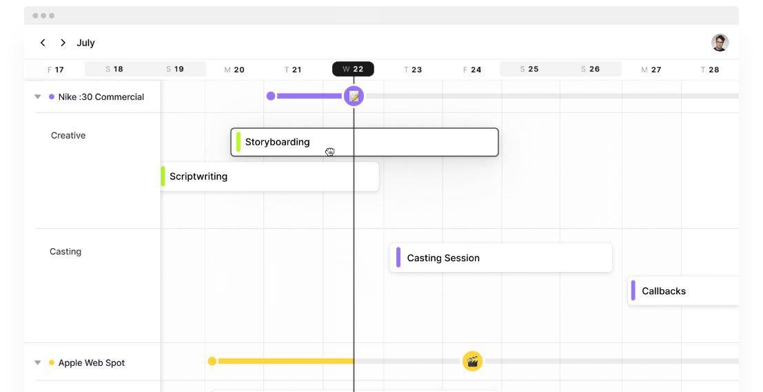 Organize your projects in time. Every file, note, convo and to-do, in a calendar.