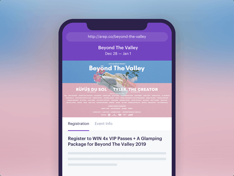 Software to help you sell more tickets through increasing word-of-mouth, building your audience & unlocking customer insights. Audience Republic helps events (physical & virtual) sell more tickets, by increasing word-of-mouth, building audiences & customer insights. Increase word-of-mouth to sell more tickets, and sell them faster. Create campaigns that reward fans who share, refer friends & follow you. Put your data to use, to help you sell more tickets. Get all your customer data in one place — including your ticket sales data, email subscribers & registrations from Audience Republic campaigns. Send targeted messages via SMS, Facebook Messenger & WhatsApp, as well as create beautiful Email Marketing campaigns. Get insights to help you sell more tickets. See your top spending customers, most loyal attendees, key influencers, their demographics & Spotify listening history. See your ticket sales, ticket buyers & insights for all your events, across all ticketing platforms you use.