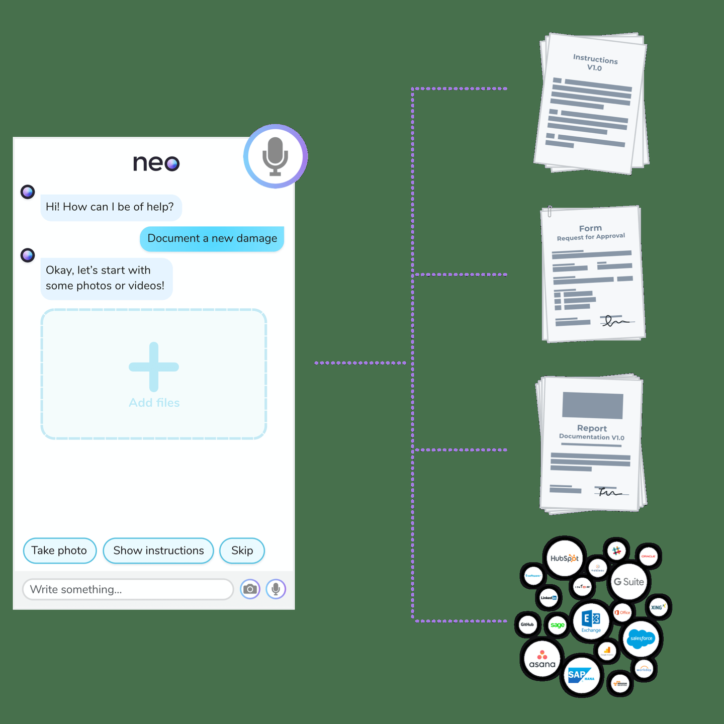 Neo is a digital assistant powered by AI, that automates your routine work: Preparing meetings, monitoring dashboards, aggregating data, and so much more. Conversational platform for virtual enterprise assistants. Our AI-assistant Neo supports employees and customers in their daily work and interaction with software. With our conversational platform, Neo can be customized to work with company-specific workflows and tools. Users can interact with Neo using voice and text. With Neo, you can request information from third-party systems and trigger actions – essentially, you're having a conversation with your B2B software systems. Our Neo Enterprise Assistant Platform allows for easy configuration and extension of Neo's functionalities and integrations, which enables customization of Neo to individual needs and requirements.
