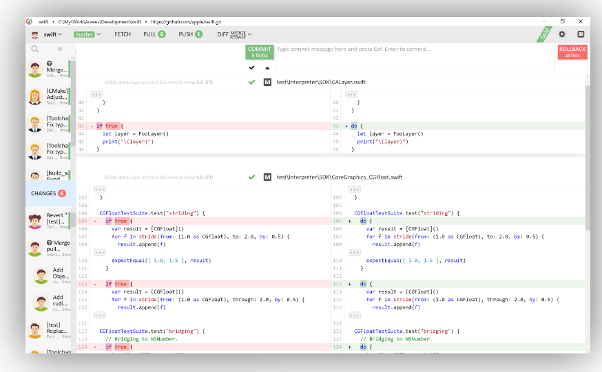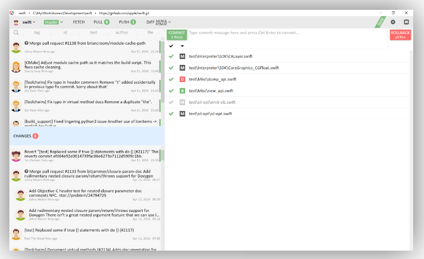 Aurees Git Client is easy, fast and productive Git client for Windows, Mac and Linux. It is a fully Free, comes bundled with an attractive interface. Clear user experience, insightful highlighting, powerful editable diff. Outstanding merge with preview, and productive conflict resolution. Aurees Git Client is a streamlined git client for viewing, editing and publishing changes from your desktop. An attractive interface and full-fledged integrated diff helping manage Git repositories with minimal effort. No more need to search external diff tools or switch between text editors and git client while working. The client shows commit changes in side by side text editors, where you can see the changes and rollback in a click. Merging is easy with the Aurees Git. It's available for Windows and Mac and it’s free for personal use. Aurees' interface is very intuitive and clean.