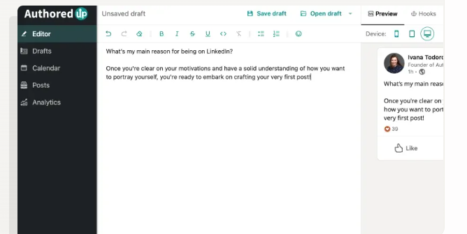 Boost your LinkedIn growth with the secure platform designed for creators. Create and analyze your content in clicks, not hours. Format your posts with bold, italic, and emojis, with included optimized hooks and readability grades, all in one place. Save your ideas into drafts and prepare posts for later. Access them in a single click, and post or schedule straight from your editor. All your published and scheduled posts are in one place. Plan, analyze, and schedule your LinkedIn content seamlessly with a centralized calendar view. Access your content table and filter posts by type, account, or tags. Explore your data and uncover hidden patterns and trends. Monitor your impressions and engagement insights. Explore the growth timeline & analyze individual posts to gain performance understanding. Unlike other LinkedIn tools, we do not collect your cookies. The safety of your account is our top priority.