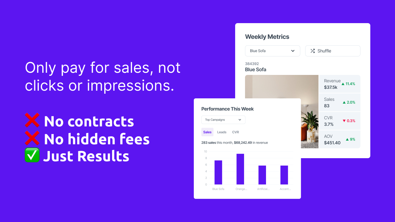 Plus, only pay for sales. No monthly contracts or hidden fees.