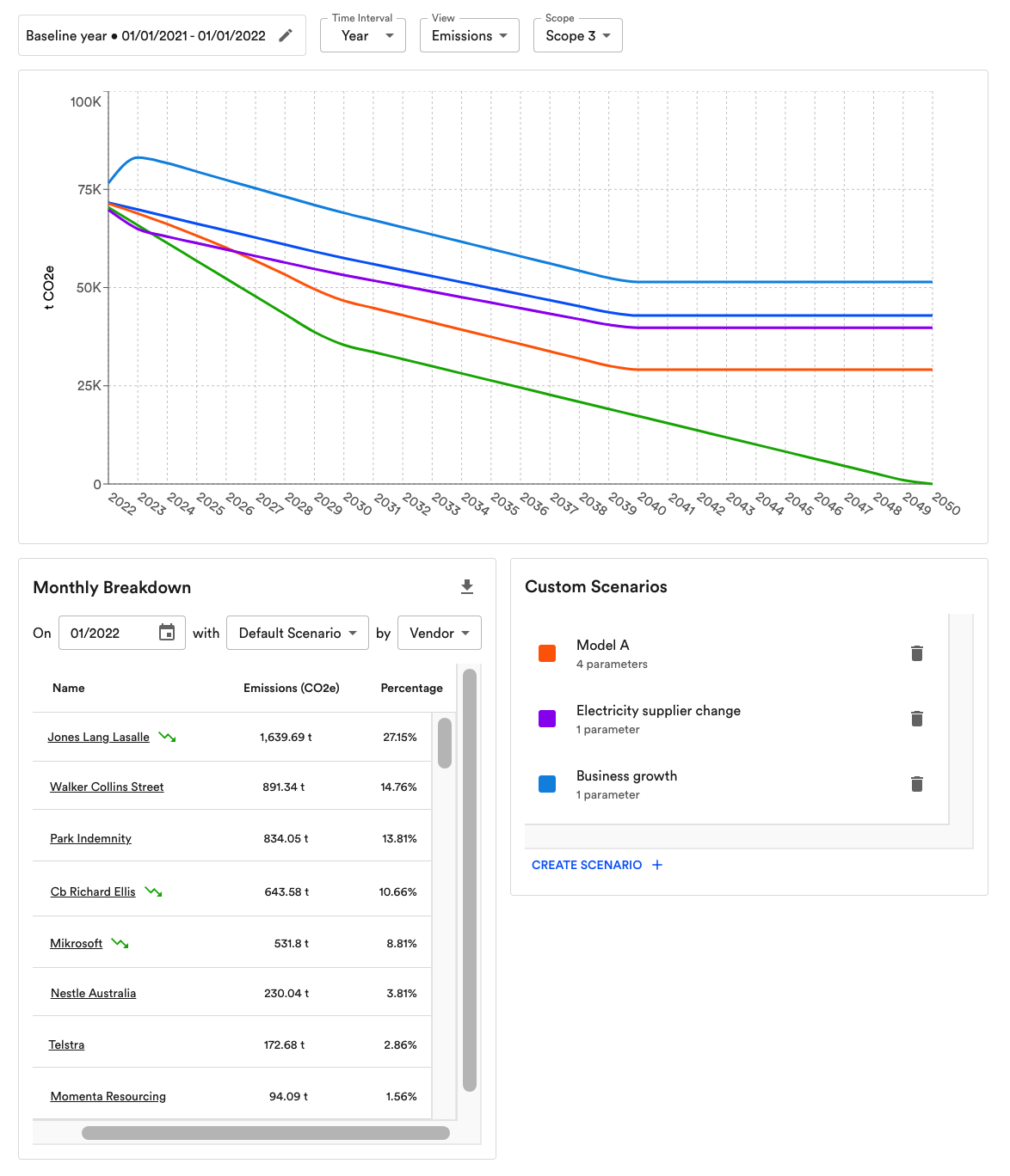 ✔ See emissions impacts of different business initiatives with powerful emissions forecasting tools.