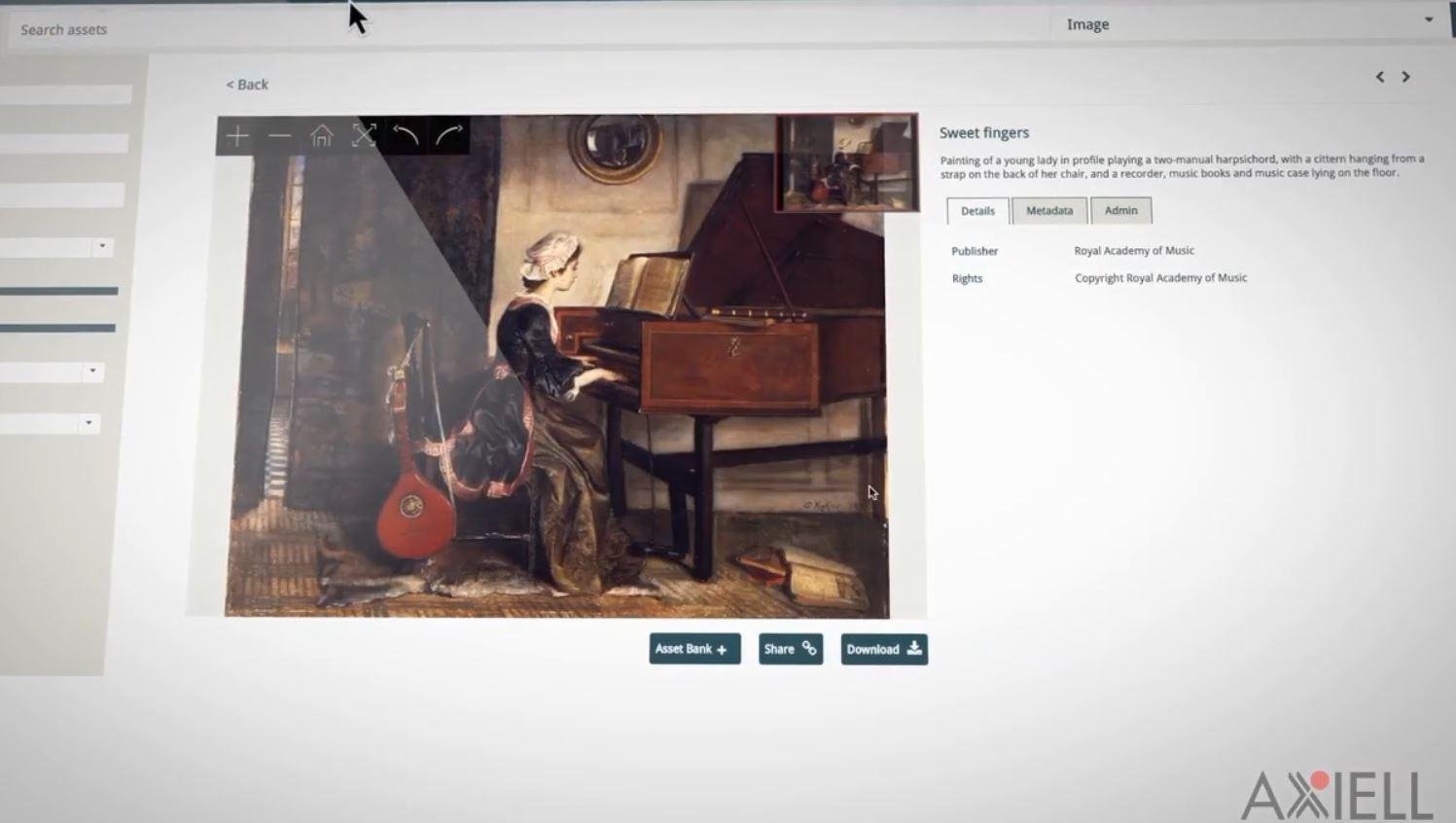 Axiell DAMS – Powered by Piction enables museums, libraries, archives and other cultural organizations to manage and serve media and metadata seamlessly, ensuring the digital assets in the collection can be effectively shared within the institution and beyond.