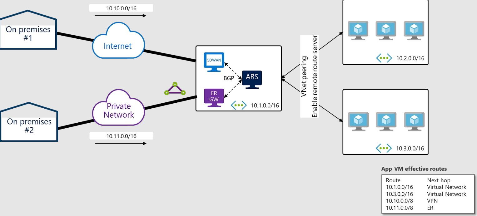 Azure Route Server enables network appliances to exchange route information with Azure virtual networks dynamically. Configure your network appliances and Azure ExpressRoute and VPN gateways to automatically take the latest route information from Azure Route Server instead of manually talking to each network. Use Azure Route Server to enable dynamic routing between your network appliances and gateways in Azure, instead of using static routing. Azure Route Server provides Border Gateway Protocol (BGP) endpoints using standard routing protocol to exchange routes. Easily use Azure Route Server with existing deployments or new deployments with support for any network topology, such as hub and spoke, full mesh, or flat virtual network.