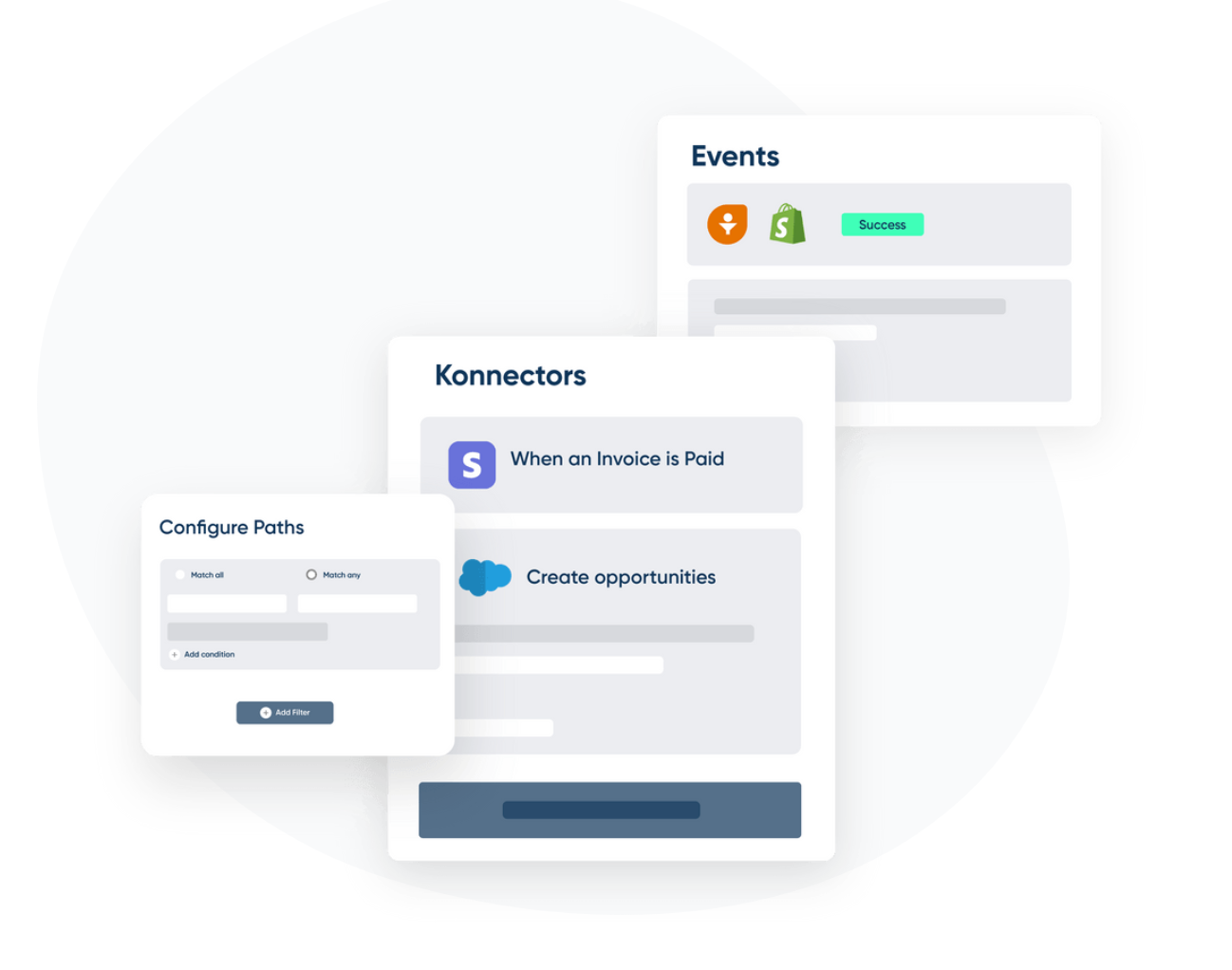 Give your business a boost with seamless integrations. Experience the limitless possibilities of CRM Stack automation with the unmatched power of AI at your fingertips. Seamlessly integrate a useful range of tools such as Salesforce, Slack, Hubspot, Shopify, and others without the need for tedious coding or technical know-how. Reduce errors and save time with the help of Konnectify’s continuously expanding pre-built connector library. While they are a leg up from manual integration, pre-built connectors are hardly the be-all end-all option. Gain complete control by creating custom workflows, develop new connectors using APIs, and map data fields between systems, all with an expert team on hand, ready to help. Transform your workflow, boost productivity, and take complete control of your processes with our robust feature set.