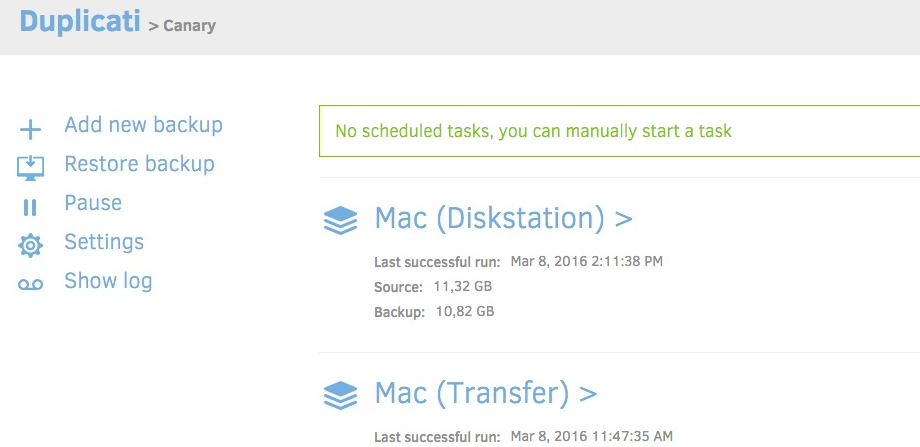 Free backup software to store encrypted backups online For Windows, macOS and Linux. Duplicati works with standard protocols like FTP, SSH, and WebDAV as well as popular services like Backblaze B2, Tardigrade, Microsoft OneDrive, Amazon S3, Google Drive, box.com, Mega, hubiC, and many others. Backup files and folders with strong AES-256 encryption. Save space with incremental backups and data deduplication. Run backups on any machine through the web-based interface or via a command-line interface. Duplicati has a built-in scheduler and auto-updater. Duplicati is free software and open source. You can use Duplicati for free even for commercial purposes. Source code is licensed under LGPL. Duplicati runs under Windows, Linux, and MacOS. It requires .NET 4.5 or Mono. Duplicati uses strong AES-256 encryption to protect your privacy. You can also use GPG to encrypt your backup. Duplicati was designed for online backups from scratch.