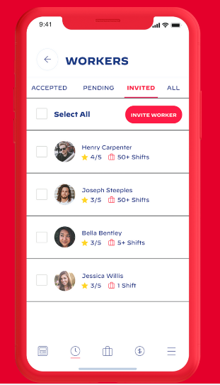 In the competitive world of your business, you need a go-to method to help find workers who are reliable and can "hustle." When a Bacon worker applies to your shift, they know to show up and get the job done. Review qualified Bacon applicants and choose the ones you want to show up. Their profile has reviews, previous experience, and ratings. If you like the worker, you keep 'em, free of charge. Your business and our method rely on each other. Rate your temp worker after their shift. We keep track of ratings and reviews so that you can rely on Bacon to send you competent workers every time. List in your post the stuff people need to know to get the job done, the location, number of workers needed, dress code, you get the gist. You're even in control of the hourly rate. This is the beauty of on-demand staffing. Once your shift is posted, any of our workers can apply. After reviewing their profiles, previous experience, and past ratings, you get to select the workers who show up.