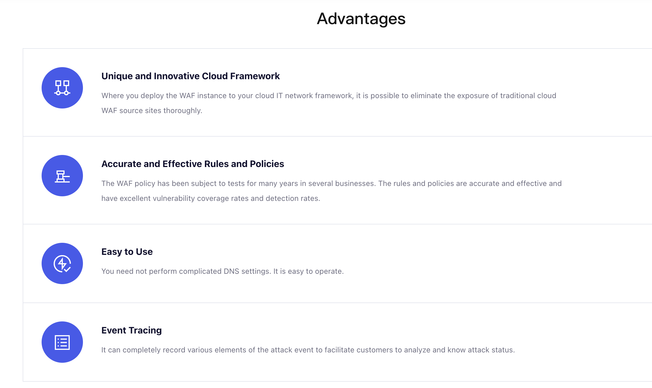 The Web Application Firewall (WAF), a web security protection product provided by AI cloud to users, can effectively protect against web attacks, help users customize access rules, and improve the security of businesses including websites. With the original WAF technical framework, you can deploy the WAF instances to individual web business entries. Thus, it protects the source site from hacker attacks by bypassing the agent under the traditional cloud WAF framework. Also, integrating the cloud security big-data capacity enables the WAF to be more effective and convenient in helping customers improve website security and availability. AI cloud security and operation experts can get zero-day vulnerability information for the first time, update the web application firewall rules library timely, and mitigate the influence imposed by the zero-day vulnerabilities.